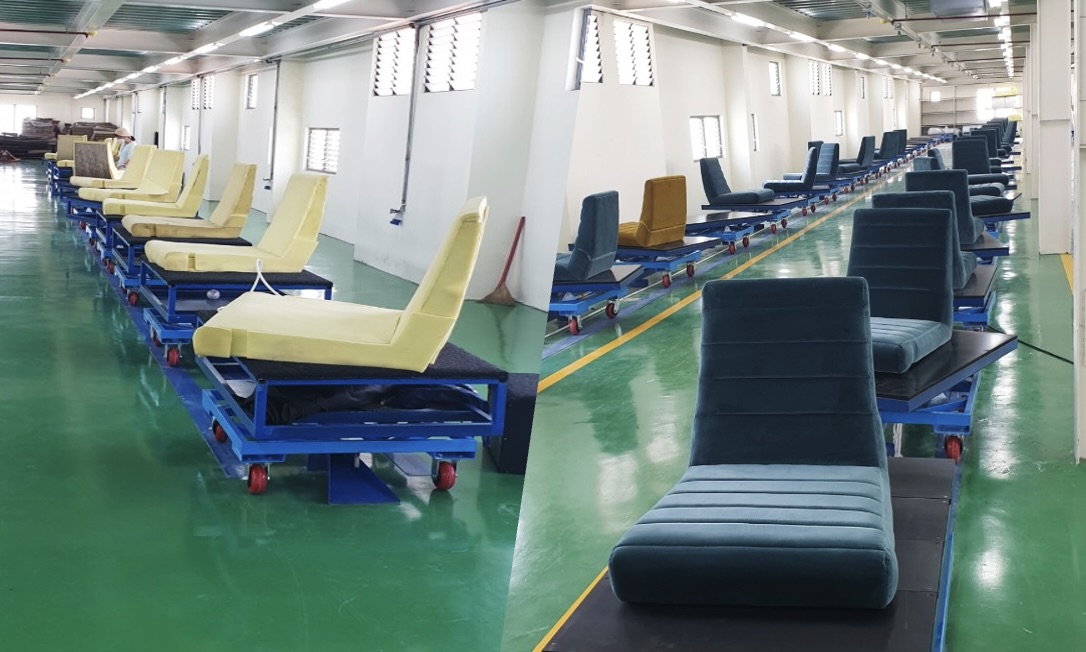 After the frames are padded with foam, the products move to the upholstery floors. Fabrics or leather are hand-applied with precise techniques, ensuring a seamless fit. This stage requires craftsmanship and expertise to achieve both aesthetic appeal and durability in the final product.